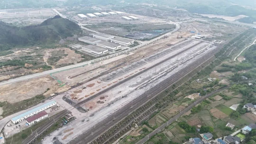专用铁路是贵州黔北现代物流新城2024年重点建设的项目之一,于2023年11月正式开工建设。它从阁老坝站既有的南北货场联络线上接轨引出,连接川黔铁路。项目占地面积509亩,正线长2.8公里,设计年货运量为近期290万吨、远期390万吨,建成后分为“长大笨”“粮油装卸”两个作业区,可以实现“铁路就在仓库边”的美好图景。